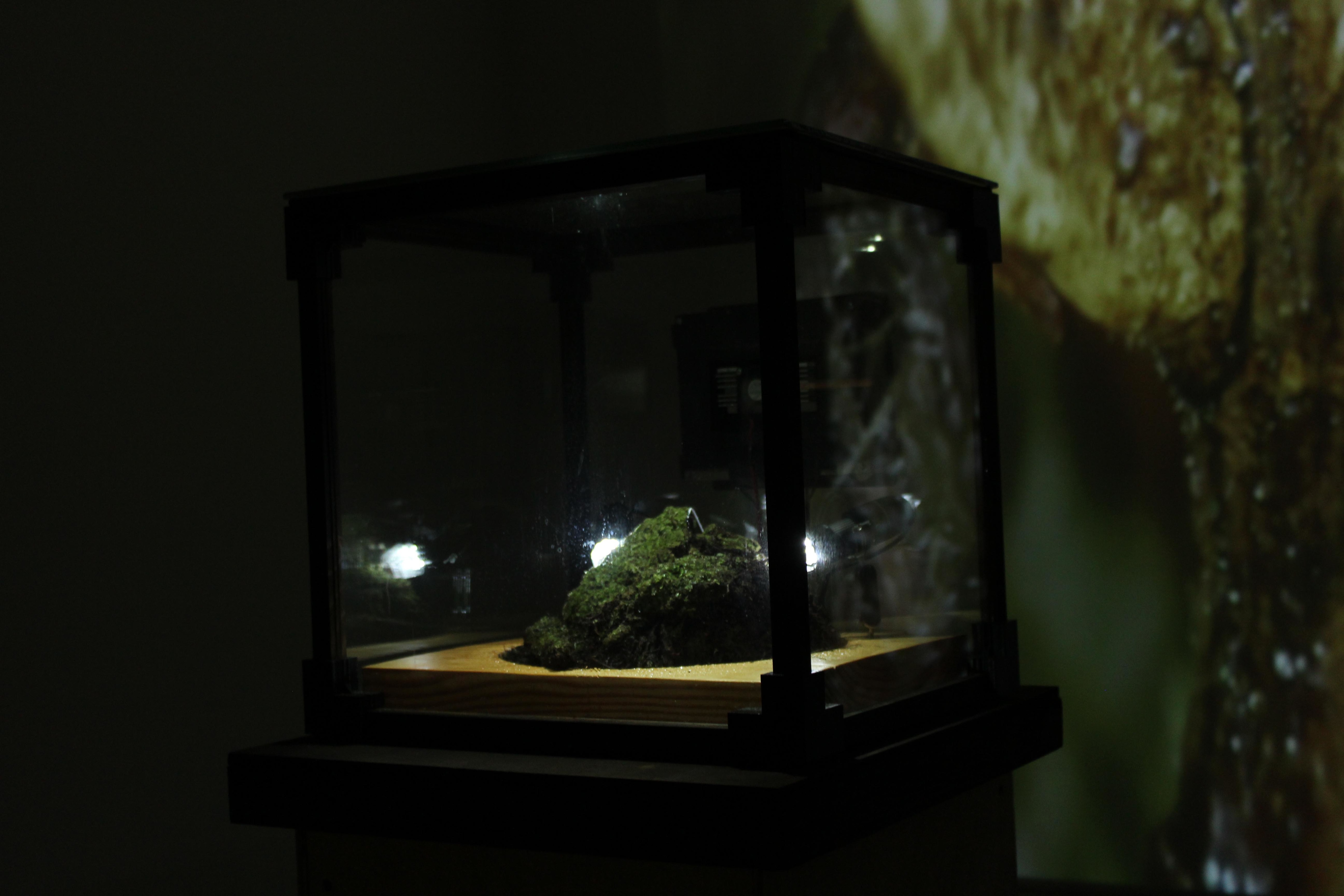 The invisible cities is a machine designed to sustain the life of native mosses of southern Chile. The mosses are of a characteristic southern species, found in dead forests. Growing over rotten trunks, in conditions of high humidity and low temperature. For this purpose a structure capable of temperature and water control has been designed, with a a cooling system based on Peltier plates and a external temperature insulation thanks to a double glass wall. At the same time, images are projected in real time extracted from 2 microscopes that constantly observe the micro world of the mosses.
